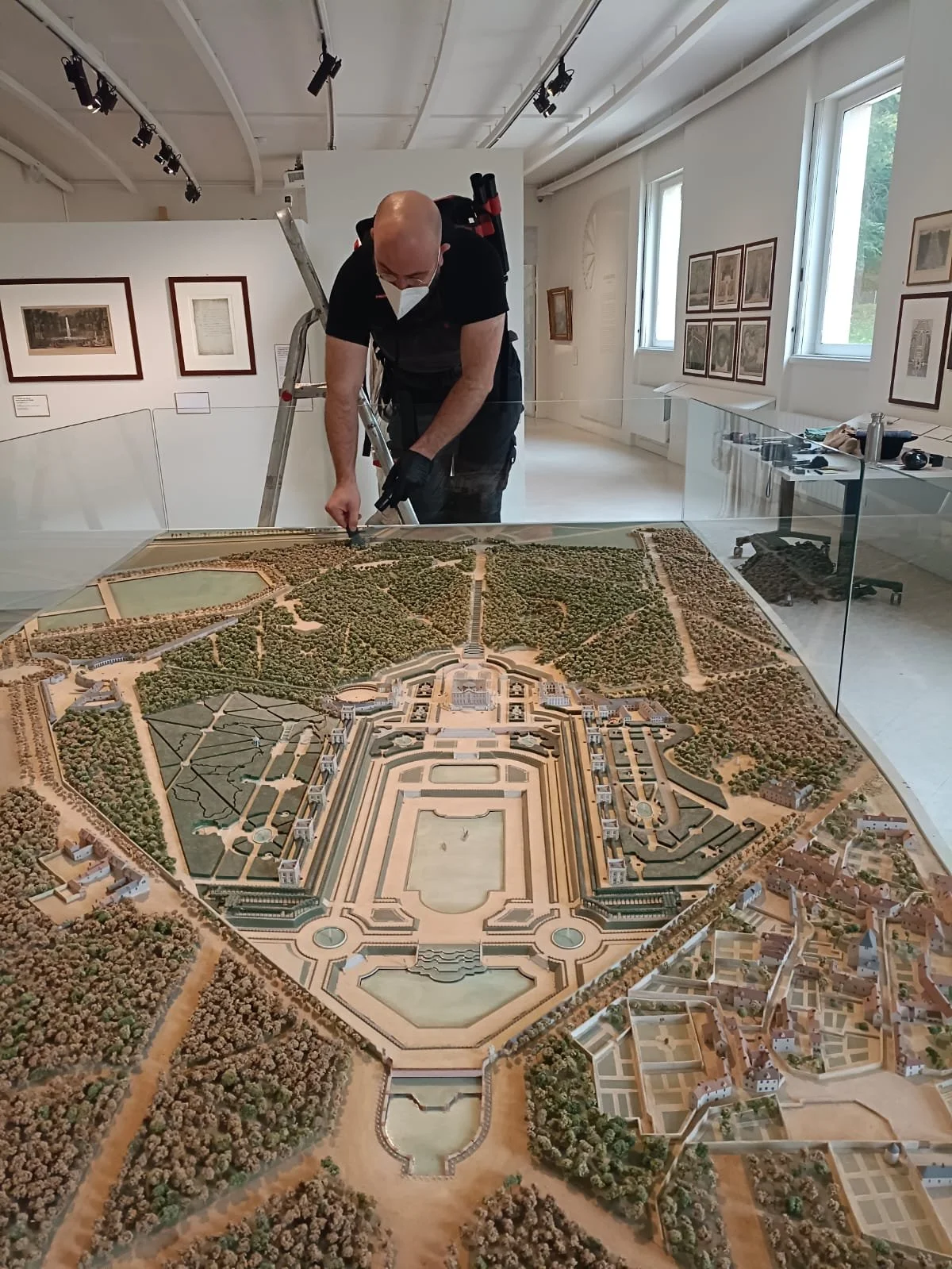 Non, je ne suis pas un géant, c’est une maquette (je sais, des effets spéciaux de folie !). Il s’agit d’une nouvelle intervention de dépoussiérage lors d’une journée de fermeture, pour la collection permanente du Domaine Royal de Marly.